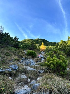 Na parking dojechałam 9.30 i był już w 2/3 zapełniony: całkiem sporo osób wpadło na ten sam pomysł, co ja. Trasa w górę przez jesienny las piękna i już po pół godzinie przebierałam się w krótkie spodnie, bo było wyjątkowo gorąco! Po wyjściu z lasu w kamory i kosodrzewinę tym bardziej. Piękna trasa, ciągle w górę, ale krajobrazowo bardzo urozmaicona. No i punktualnie o 13 stanęłam na szczycie! Bajka 🤩
