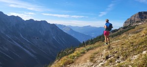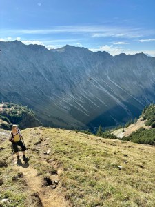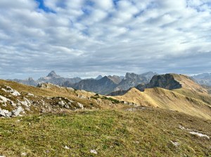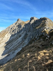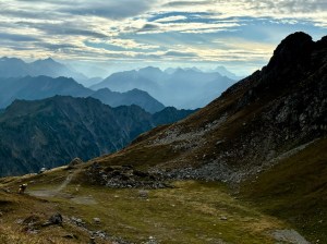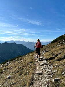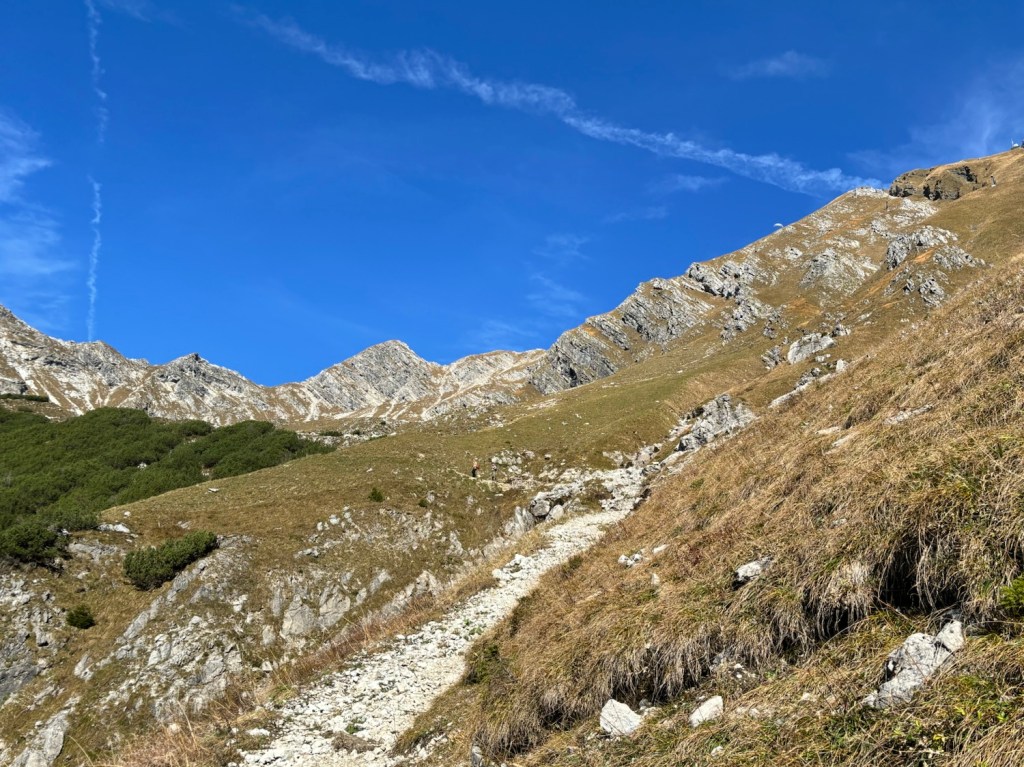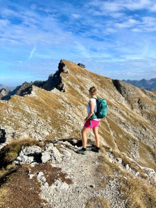 Jak już weszłyśmy na ścieżkę, to zachwyt buchnął: widoki są, ludzi brak, cisza i spokój, bez buczenia kolejaki nad głową, no bajka! A do tego rzut oka na mapy.cz i pomysł: po co iść prosto pod górę na Nebelhorn, jak można zakręcić większą rundę i pójść granią! Od pomysłu do wykonania droga krótka, więc ruszamy 🙂 Tutaj jest opis całej grani, my robimy tylko pół https://www.gamssteig.de/touren/gaisalphorn-nebelhorn