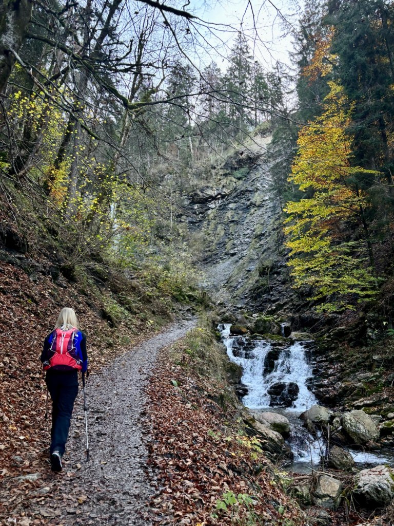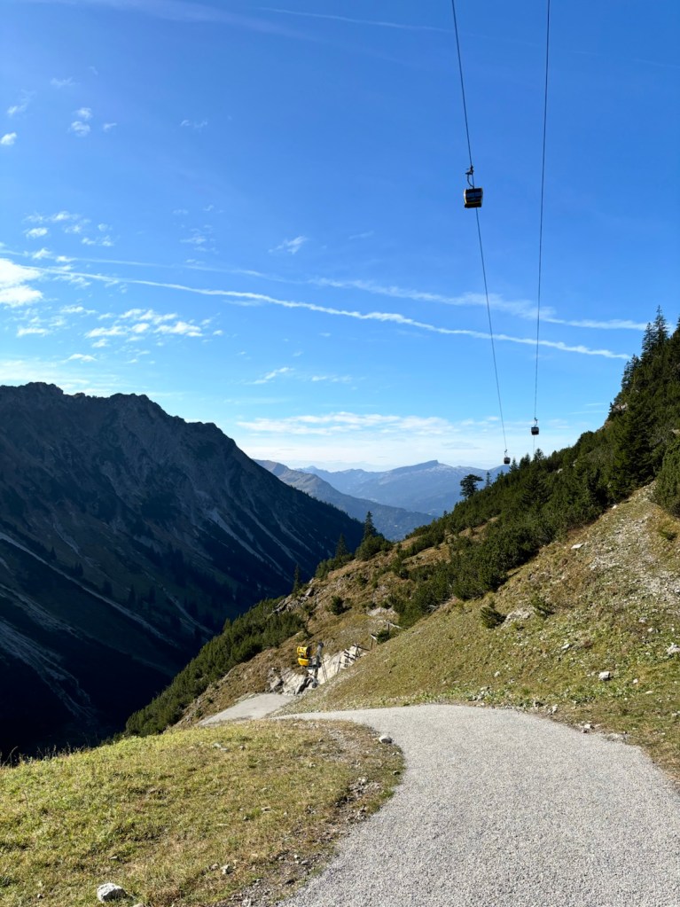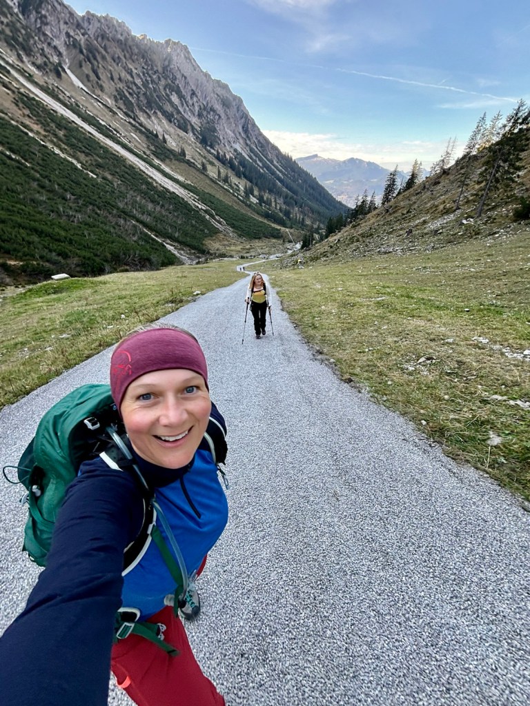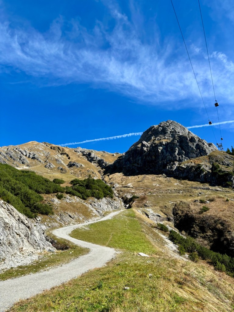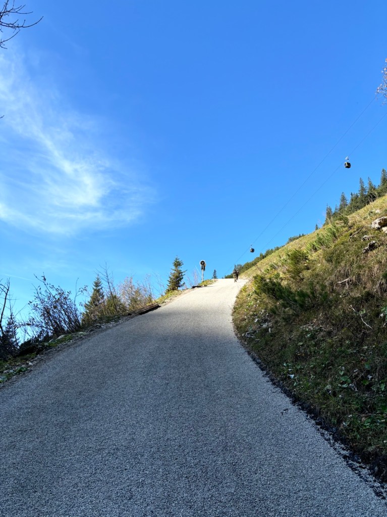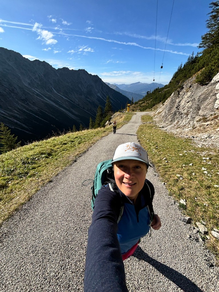 Pierwsze 2h idzie się w cieniu, jest rześko, ale ostro pod górę, więc szybko robi się ciepło. Najgorszy odcinek to ten od Seealpe: ubita droga przechodzi w asfalt, nachylenie bezlitosne a ostatni km po asfalcie to chyba nachylenie >30%, miałyśmy serdecznie dość! Ale na szczęście dało się z tej trasy odbić, a jak już odbiłyśmy to zrobiło się przepięknie.