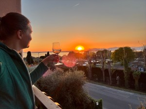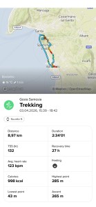 A potem zejście pętelka, przez winne i oliwne ogródki, wzdłuż pięknych chałup z widokiem na jezior, echhhh… i po 9km z powrotem w aucie i dojazd na moją kwaterę i chill na tarasie o zachodzie słońca – bosko! 🌅